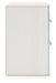 - Matte white finish with subtle replicated wood grain